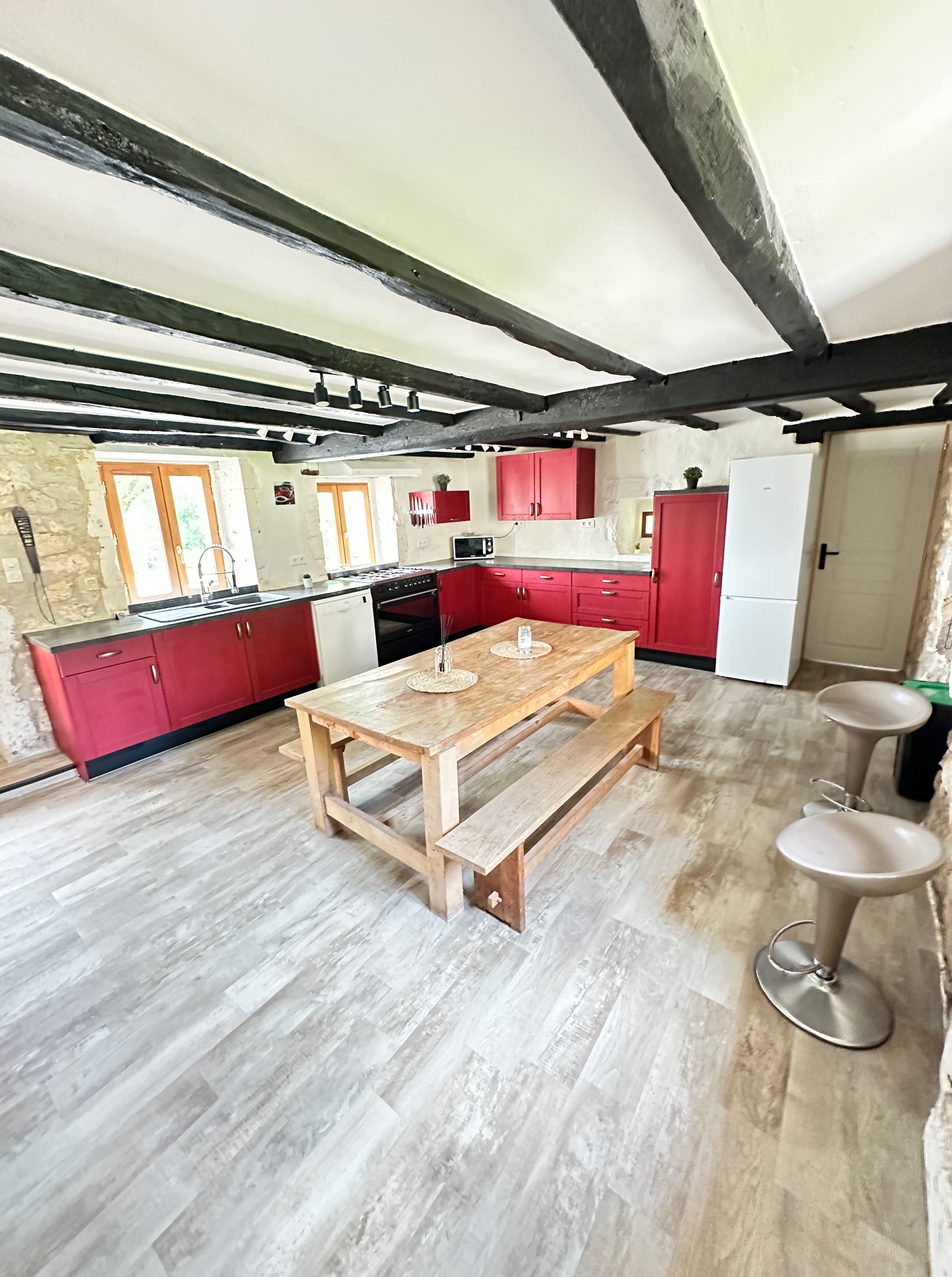 - Une grande table et 2 bancs